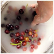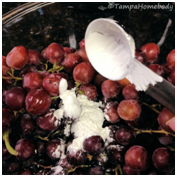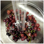(2) Sprinkle 1-2 teaspoons of salt and baking soda over grapes, let it sit for a few minutes and rinse with water before eating. Also you can remove the stem, and freeze the grape for future use.