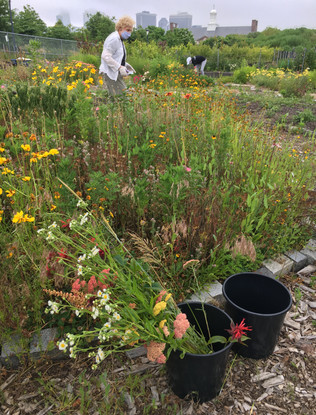 Our last update this week is our great partnership with Bloom Again Bklyn. Bloom Again Bklyn works to provide beautiful bouquets of flowers to senior centers. Their programs exist in part to help foster communication between older and younger generations and to strengthen community relations. This week they came out to our garden to harvest flowers to donate to home-bound seniors. Here are some wonderful pictures of them harvesting, and the beautiful bouquets they put together.