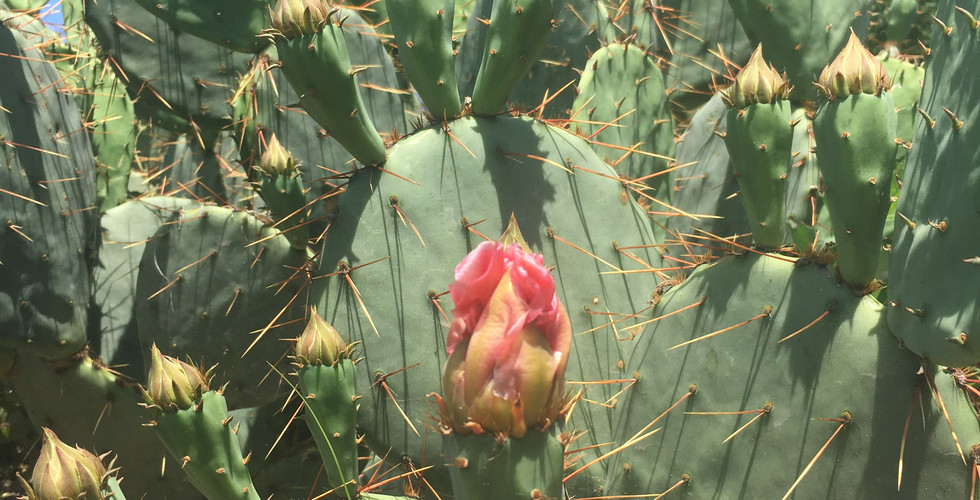 In other news, our prickly pear cactus is flowering!